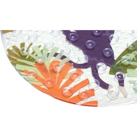 -. Feature : Size: 15.25" x 27" / Great for standing or sitting / Skid-resistant suction cups hold mat firmly in place / Moisten bottom of tub and press suction cups in place; water drains through suction cups / Machine washable