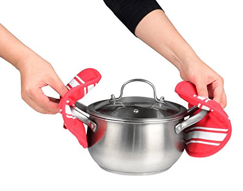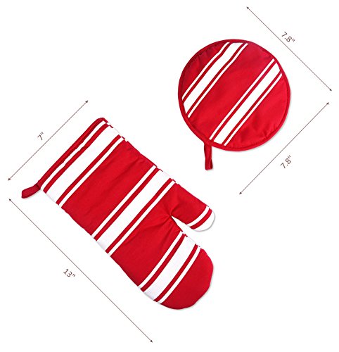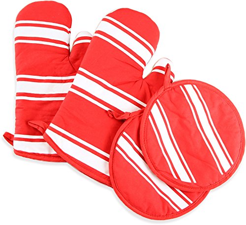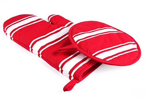- OH SO STYLISH : The red stripe oven gloves and pot holders will have you looking fashionable while you're cooking and baking! Our baking glove set is truly the best Oven Mitts and Pot Holders Set because it's made with both form and function in mind