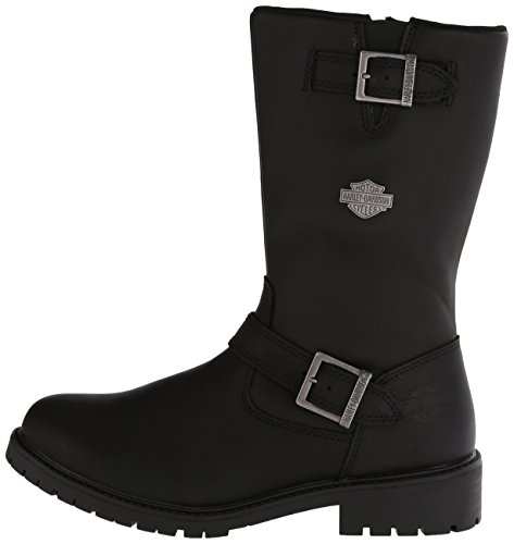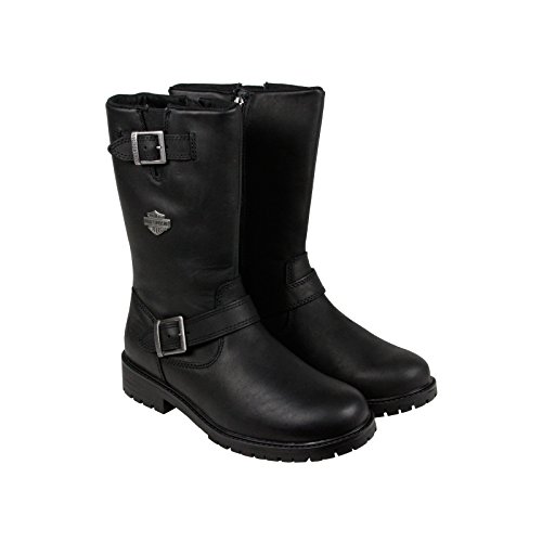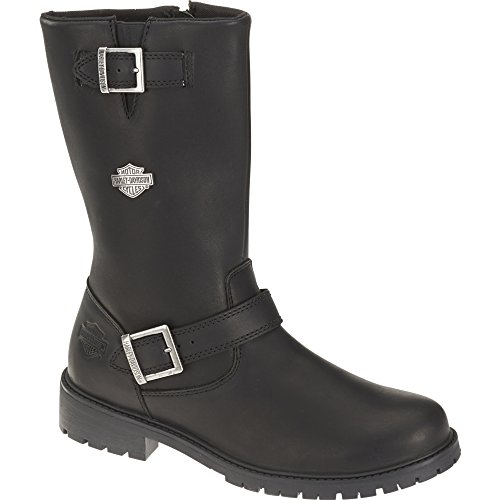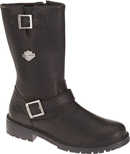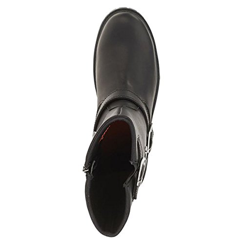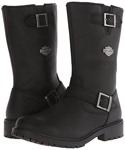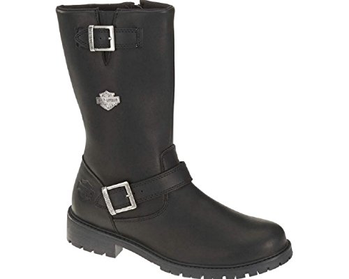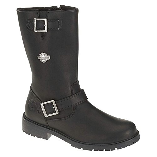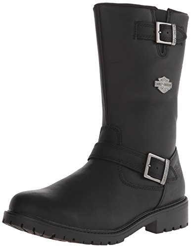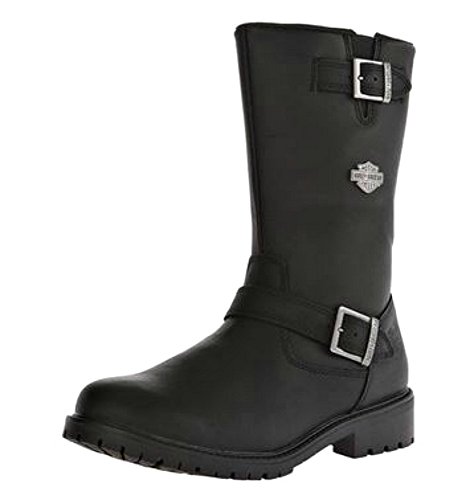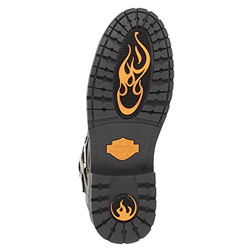 Studio : Harley-Davidson Footwear Publisher : Harley-Davidson Footwear Binding : Shoes Product Description Harley-Davidson® Men's Lifestyle Randy black leather motorcycle. Designed to be handsome, manufactured to last. Made with the best full grain leather uppers available, a full-length soft cushioned sock lining, and industry's best YKK® locking inside zippers for ease of putting on and taking off. Designed with a round toe, a front cross strap with a Harley® buckle, a snugging buckle and strap at the top, an embossed Harley® Bar Shield logo on the heel, and a Harley-Davidson® Bar Shield logo on the side. Shaft height: 10-inches, Heel height: 1.5-inches. Durable rubber outsoles make for a comfortable and easy stride, and fatigue-free standing. The boot's sole, insole and upper are bound using state-of-the-art cement construction methods, giving superior flexibility for fatigue-free wear. Manufacturer Part Number D93261. 0