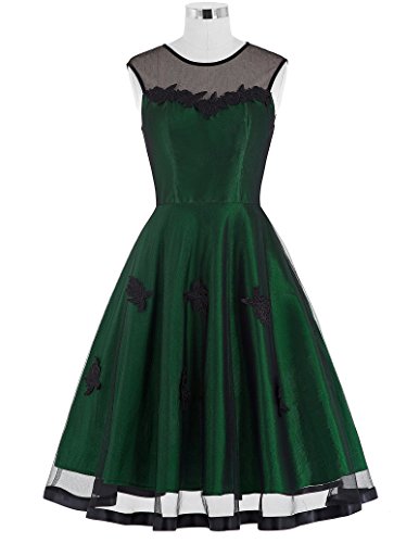 Feature : Women's Knee-Length Sleeveless Vintage Swing Dresses / BP112: 45%Nylon 55%Polyester, Wine/Dark Green, Zipper back, Appliques, Two layers / Please refer to our size chart on the left pictures carefully. Thank you / Perfect for party, cocktail, prom, and other special occasions / More classy women vintage dresses available in our store, don't miss them