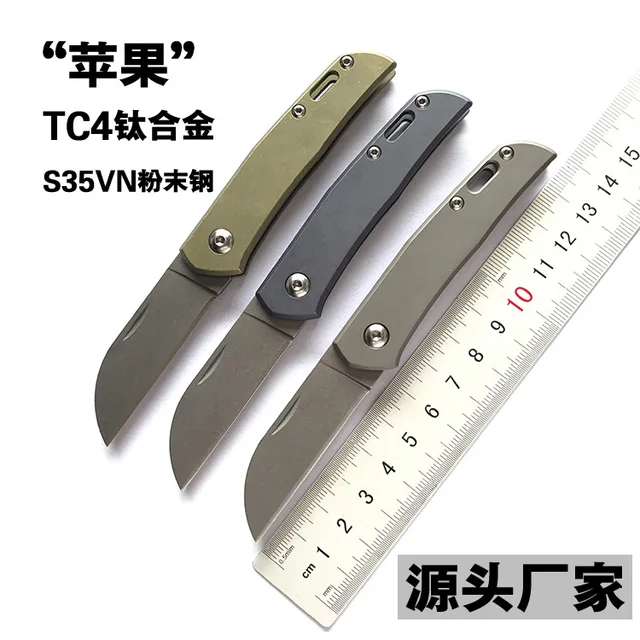 | [해외] 미니 야외 포켓 접는 나이프, 티타늄 합금 TC4 S35VN 분말 스틸 블레이드, 낚시 보트 하이킹 사냥 전술 생존 |