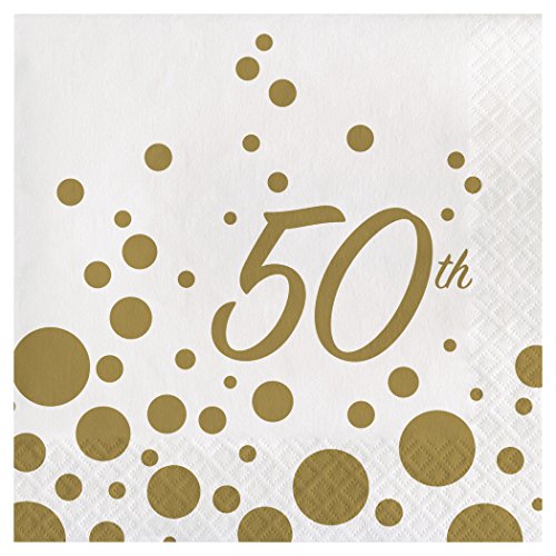 Creative Converting 317843 16 Count 50th Anniversary Paper Lunch Napkins, Sparkle and Shine Gold