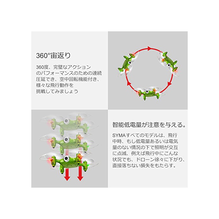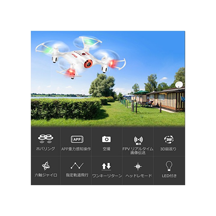 안정 한 비행 시스템:최신의 6축 쟈이로 비행 제어 시스템에,안정 한 비행을 확보하고, 보다 아름다운 사진이나 비디오를 취하는 것 를 할 수 있습니다.2.4GHz의 무선 제어 기술을 채용하고, 강력한 항간섭 기능을 확보합니다.저 전압,스쳐 전류 보호 기능이 있고, 비행 안전성을 확보하는 것 를 할 수 있습니다.(대상 연령10세 이상(아드님이 사용할 때는,반드시 어른 이 시중들어 주십시오)