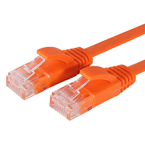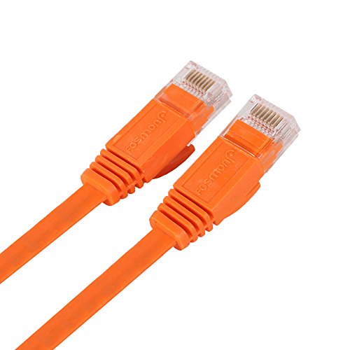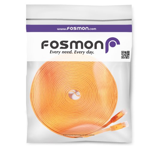 Fosmon (50 Feet - Orange) RJ45 CAT6 Snagless Ethernet Patch Cable [FLAT Tangle Free] - Ultra Speed Gigabit - Modem / Router / LAN / Printer / MAC / Laptop