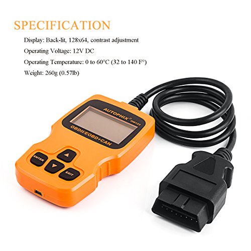 Built-in OBD-II DTC lookup library for helping and guiding you to fix the car, which is easy for you to understand the fault code. Ergonomically designed, fit comfortable in one hand,and is still well built with a large LCD display that has backlit and contrast adjustment