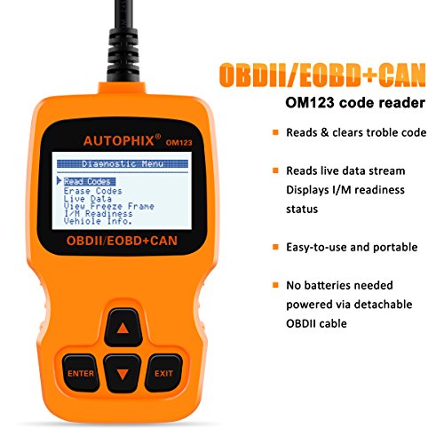 Autophix OM123 Automotive OBD II Car Scanner Check Engine Fault Code Reader, Turn off Engine Light, Clear Codes and Reset Monitors Diagnostic Obd2 Scan Tools (Orange)