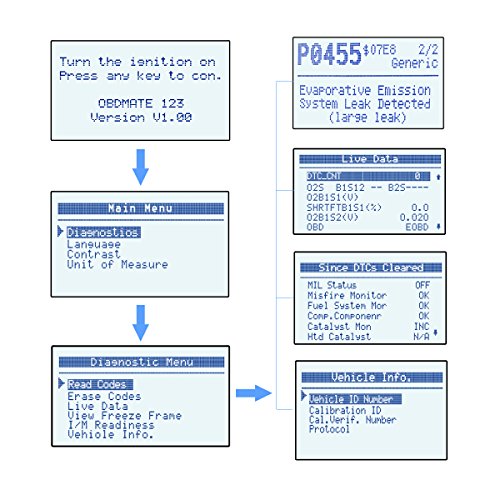 Obd car doctor diagnostic tool identifies engine fault, Reads & clears trouble code: generic codes, pending codes and manufacturer's specific codes and turn off flashing dashboard warning lights. Supports English, French, Germany, Spanish, and Finnish language