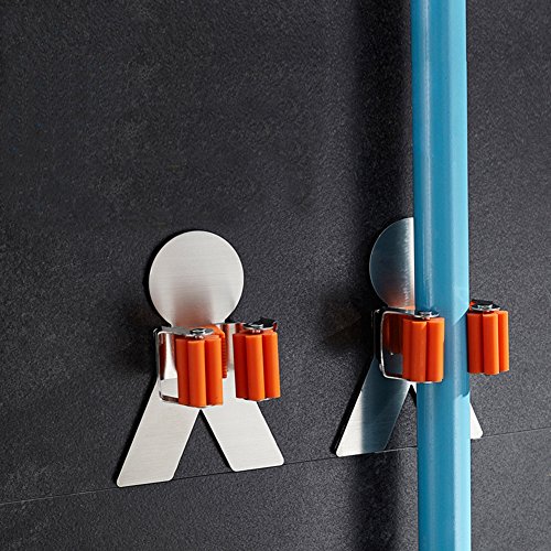 - DURABLE MATERIAL: Made of 304 stainless steel, will not rust easily and the 3M adhesive on the back can guarantee that the mop holder will stick to the surface well.