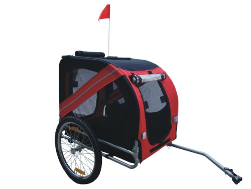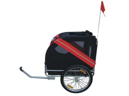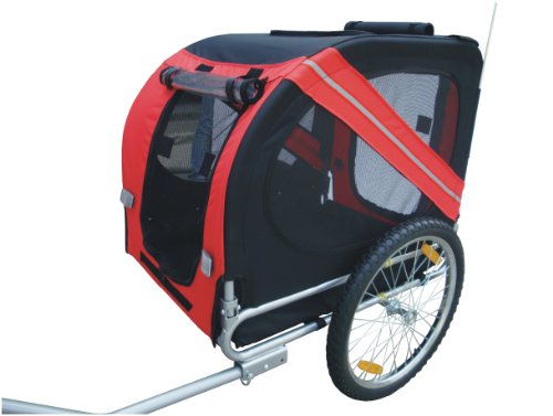 - Feature : Includes universal bicycle hitch -- work with most model of bikes / Zippered screen and meshed windows allow for maximum air flow. / Clear plastic cover to refrain rain and wind / Wide wheel base with 20" air-filled tires provides stable ride / Inside cabin dimensions 29" x 23" x 25"; Loading capacity: 88lbs; Trailer Weight: 35lbs