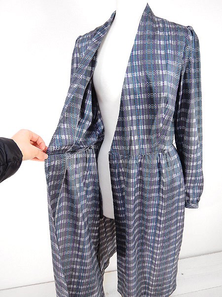 Ladies ブランド カラーグレー・青・紫 メール便不可 コンディション★★★ 素材ポリエステル 表記サイズ7/8 実寸サイズ 着丈 109 cm 身幅 43 cm 肩幅 35 cm 袖丈 61 cm ウエスト 68 cm ※ウエスト・ヒップ以外は平置き採寸【code】#b