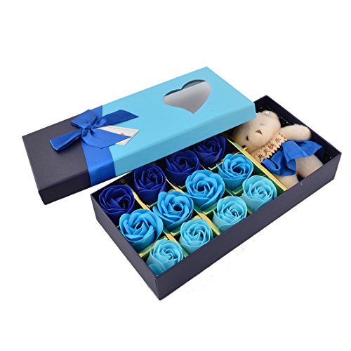 uxcell Heart Pattern Festival Gift Ribbon Bear Decor Bathing Soap Flower 13 in 1 Blue