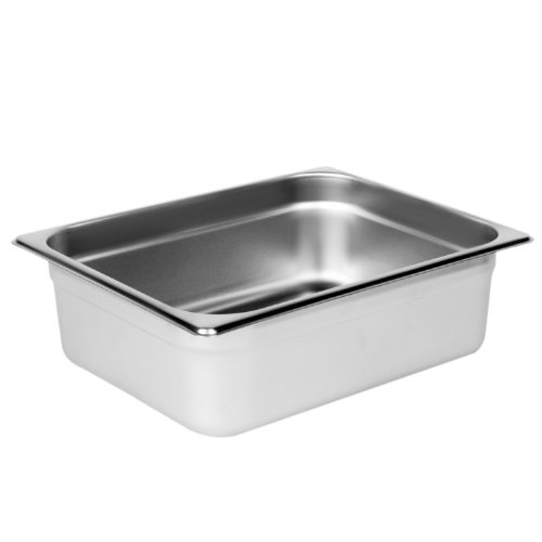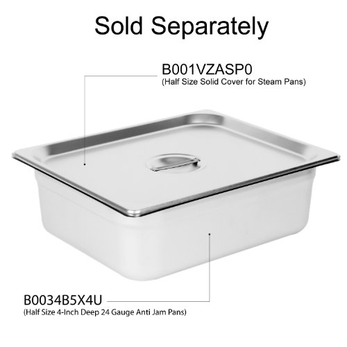 Excellante half size 4-inch deep 24 gauge anti jam pans. The anti-Jam, heavy-duty, 24 gauge, stainless steel steam pans are used as durable food holders. They are perfect for holding food, condiments, or any other eatery items. The anti-jam feature makes the steam pans easily removable. The corners allow easy manueverability between pans. NSF(National Sanitation Foundation) listed. 2 steps in choosing the right size of steam pan that you are looking for: (1.) In foodservice industry, we use full, half, third,-quarter, sixth and ninth size as referring to standard steam pan size term. You can mix and match sizes to give you one full size steam pan space. For instance, you can buy 2 half size, or 3 third size steam pans for your full size chafer or food warmer. ( 2.) Next selection is the depth of the steam pan. Standard sizes are 2-1/2, 4 and 6-inch deep.Feature