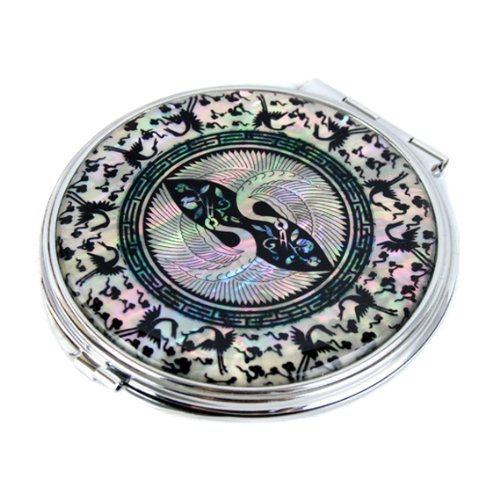 Mother of Pearl Crane Design Double Compact Magnifying Purse Mirror