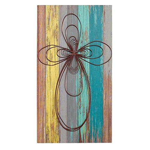Cross Colorful Lath Look 12 x 22 Inch Wood Metal Decorative Hanging Wall Plaque