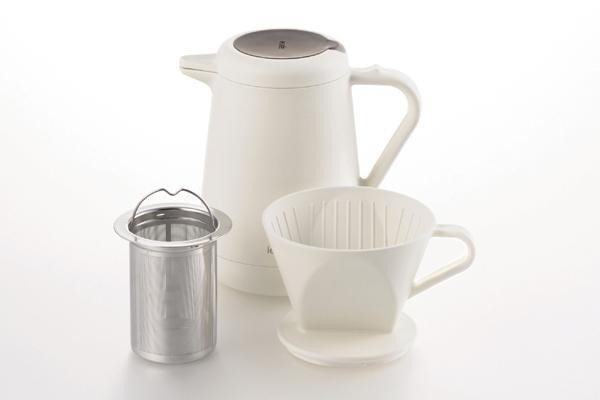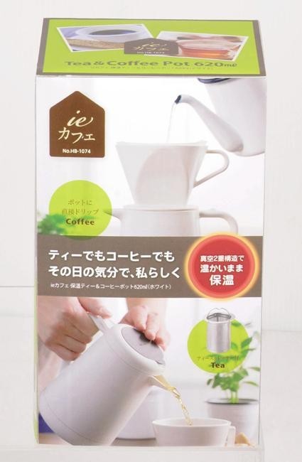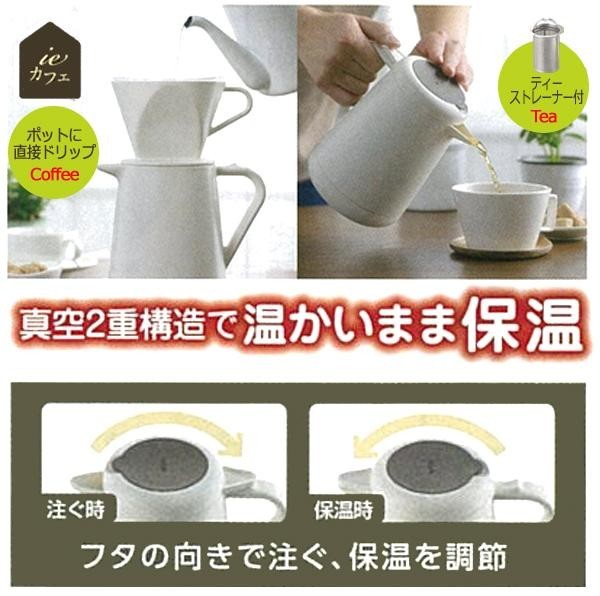 | 真空2重構造で温かいまま保温可能。ポットに直接ドリップでコーヒーが作れます。ティーストレーナーも付いています。 |