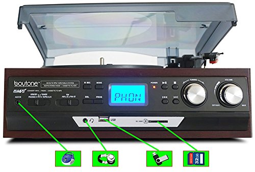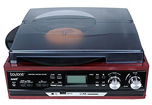Boytone BT-17DJM 3-speed Stereo Turntable, 2 Built in Speakers Digital LCD Display AM/FM Radio, USB/SD Slot, AUX+ MP3 & WMA Playback /Recorder & Headphone Jack + Remote Control