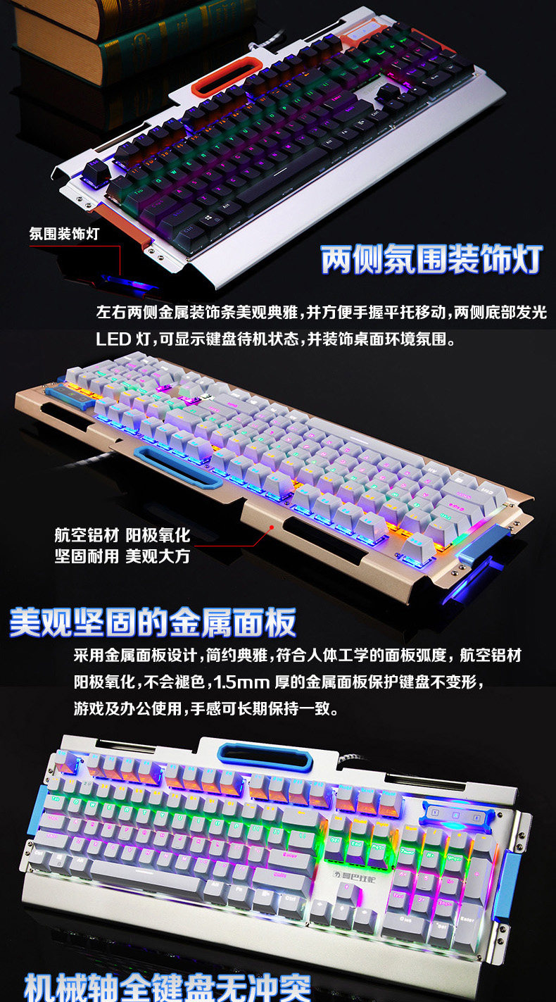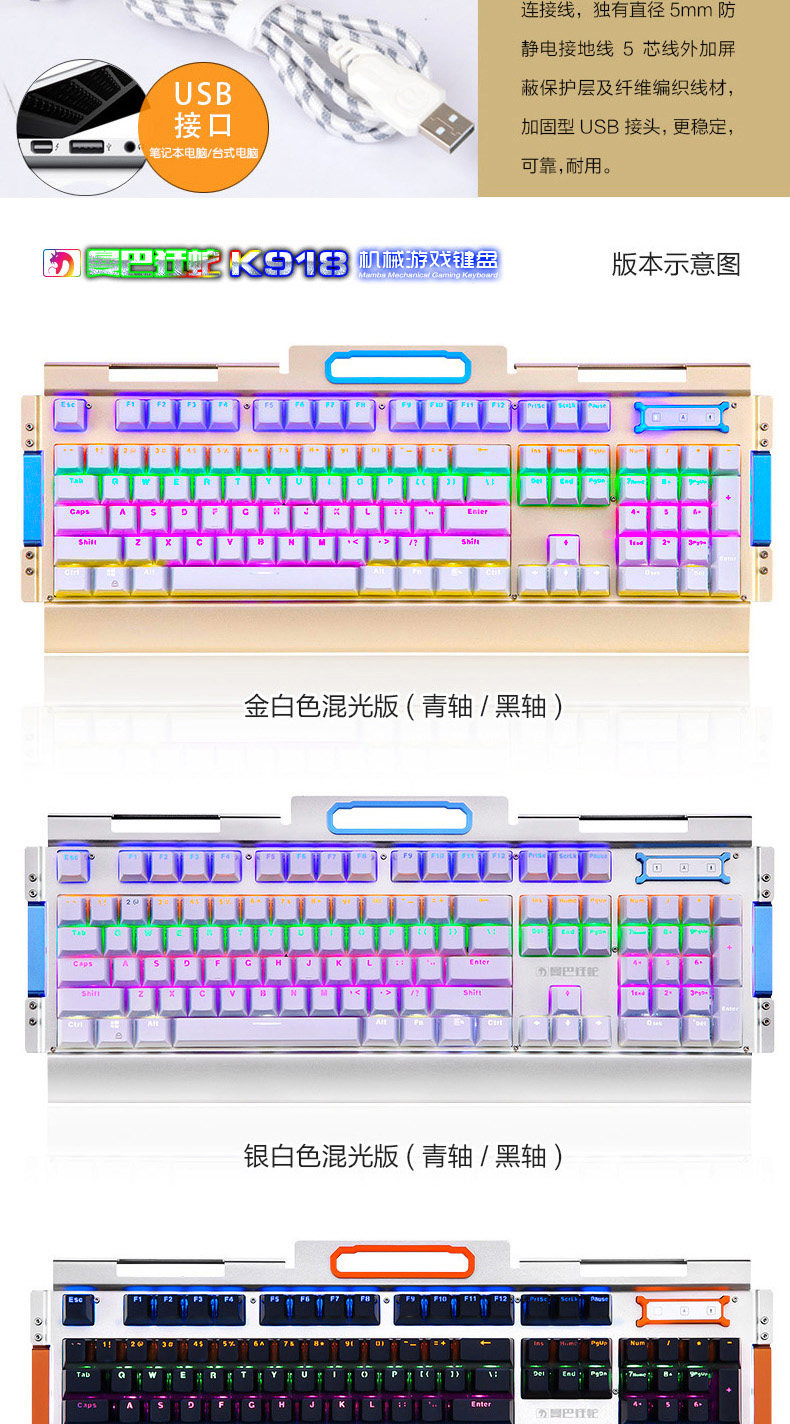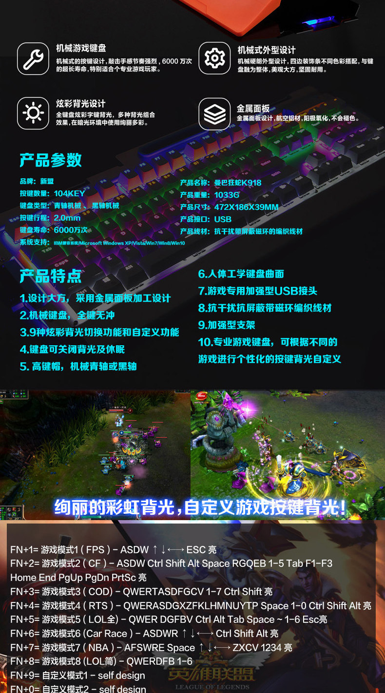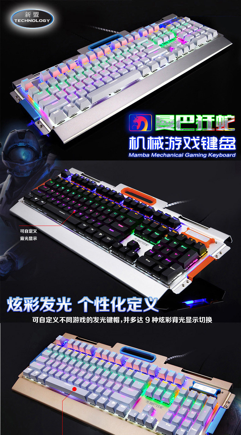新盟曼巴狂蛇 机械键盘背光游戏USB金属键盘104键青轴黑轴无冲lol