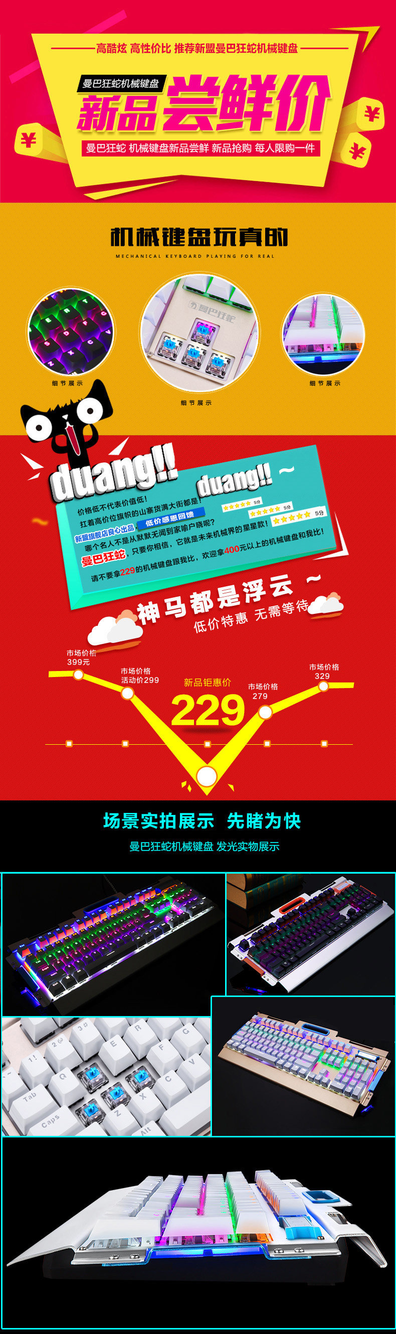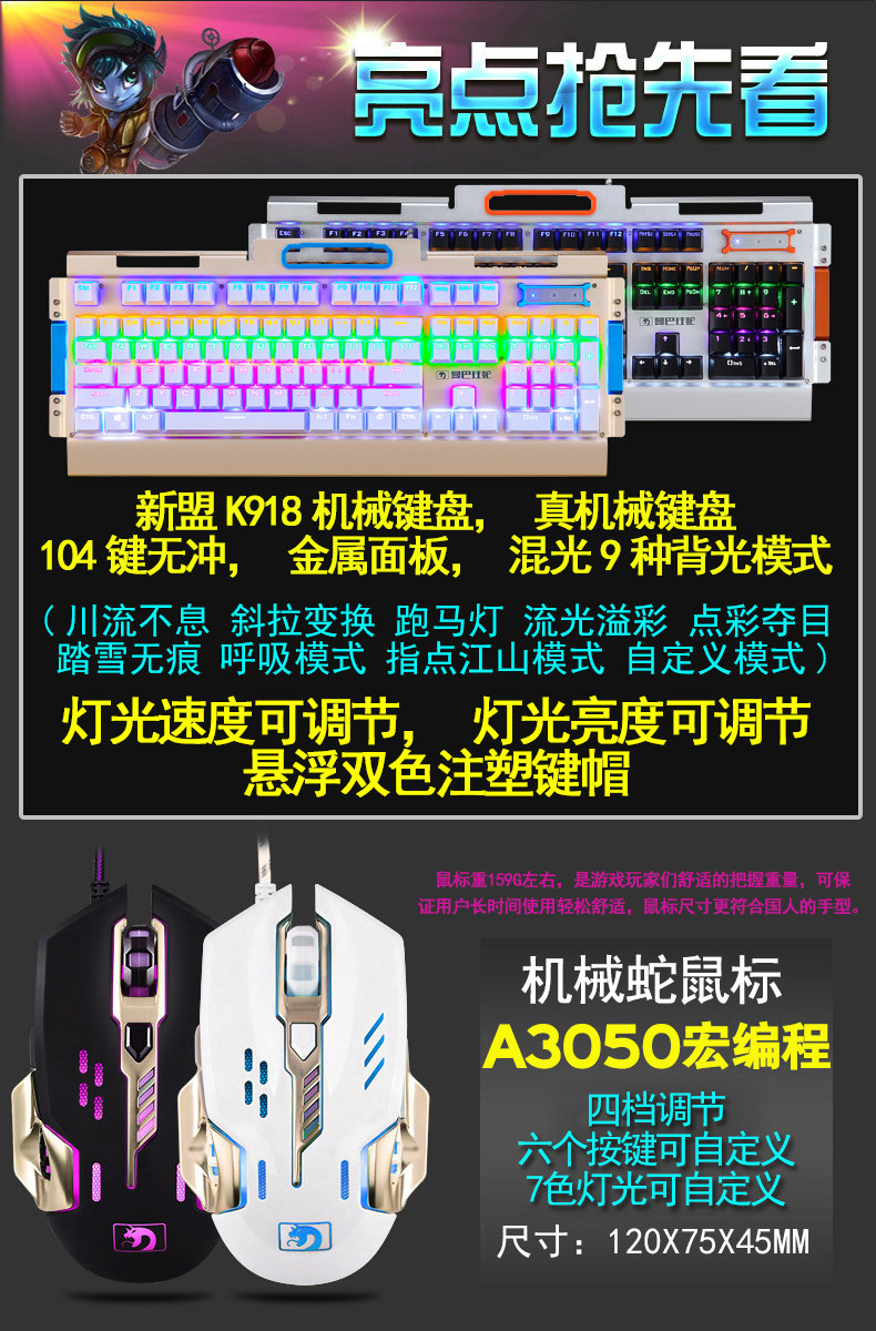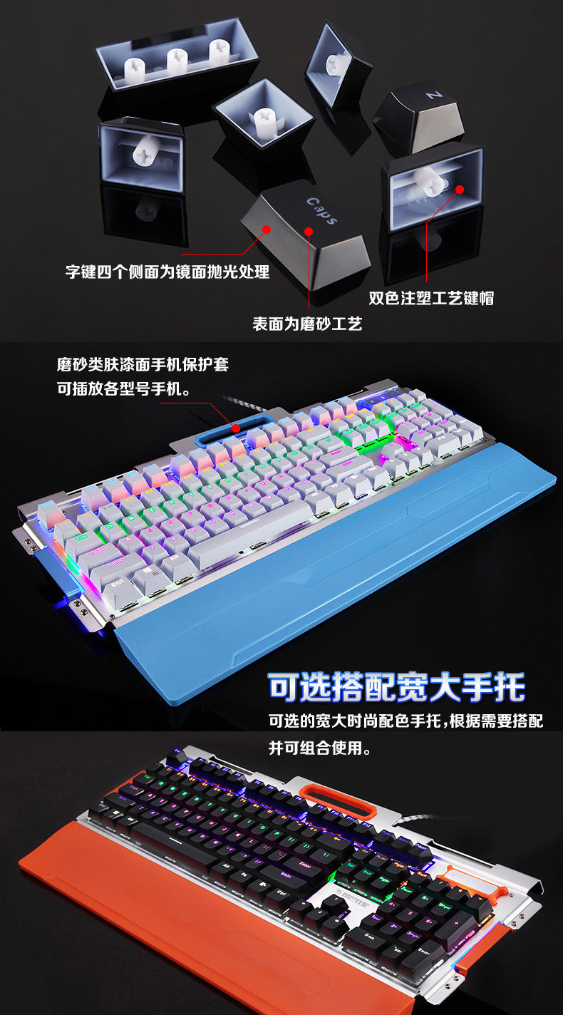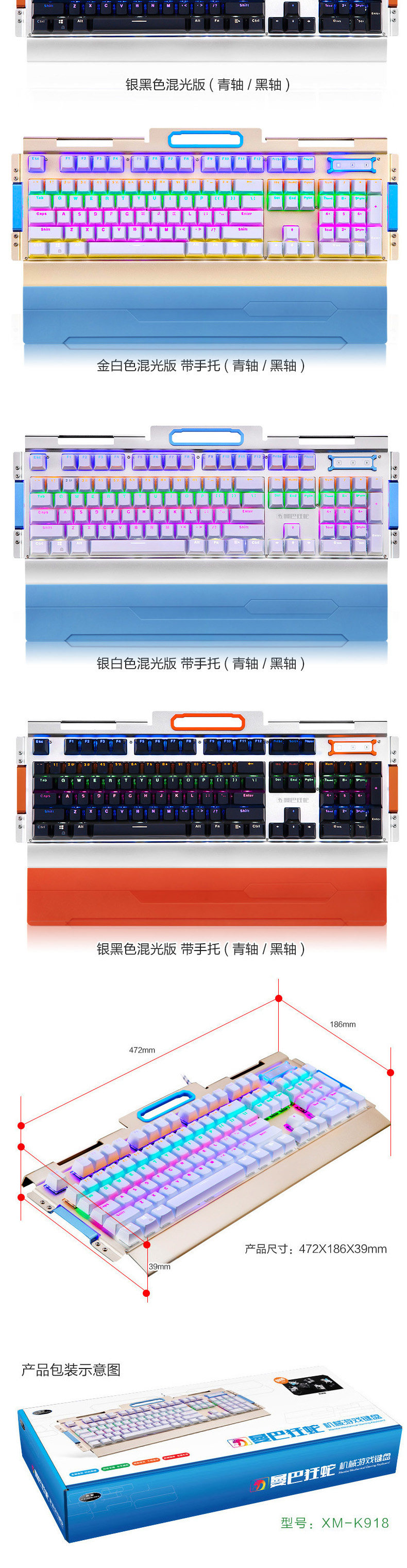 新盟曼巴狂蛇 机械键盘背光游戏USB金属键盘104键青轴黑轴无冲lol