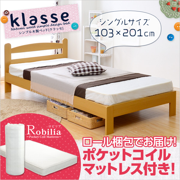 シンプル木製ベッド【Klasse-クラッセ-】シングル(ロール梱包のポケットコイルマットレス付き)