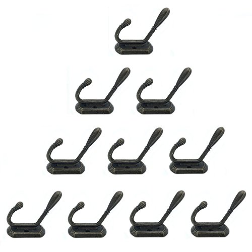 Richohome Retro Dual Coat and Hat Hook with Square Base- Pack of 10
