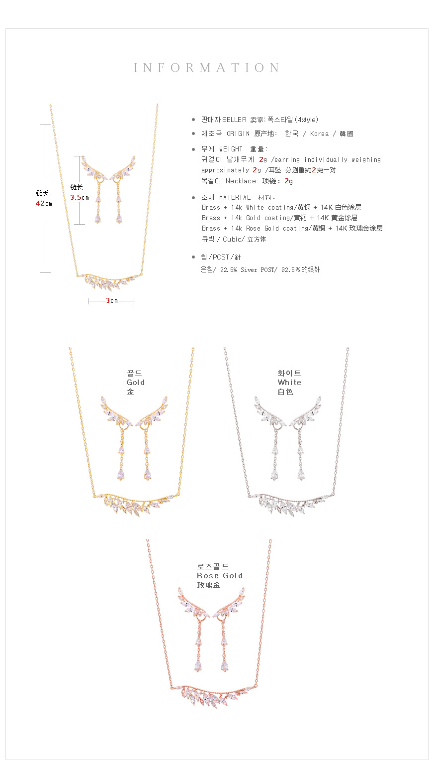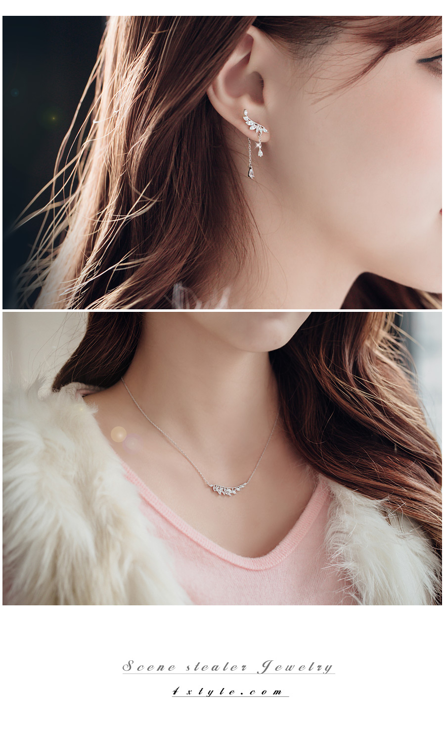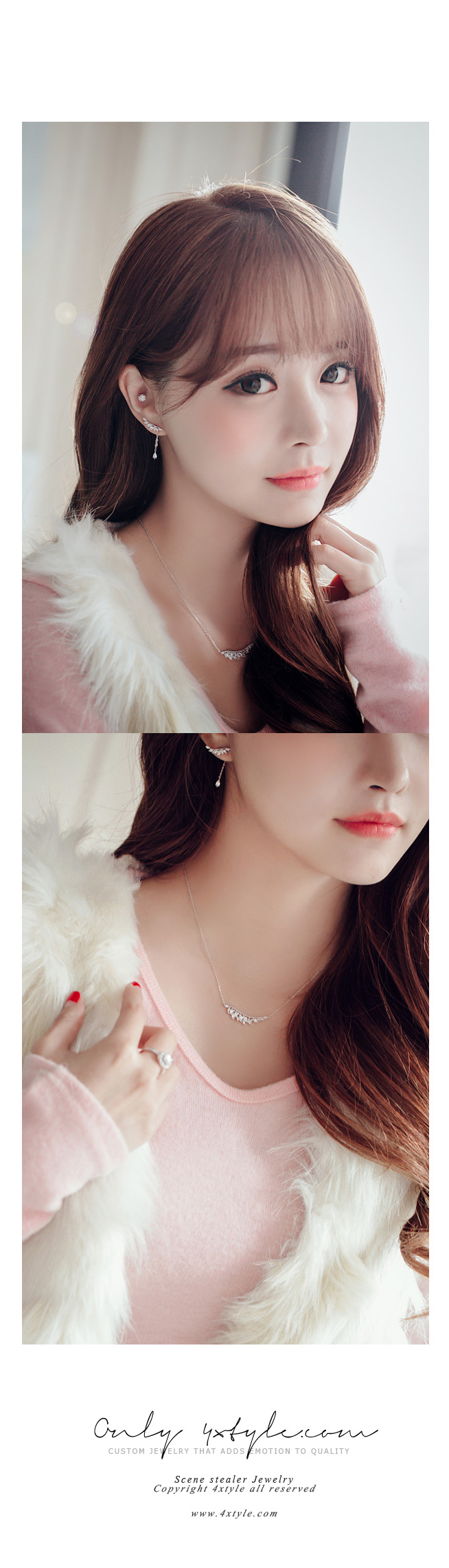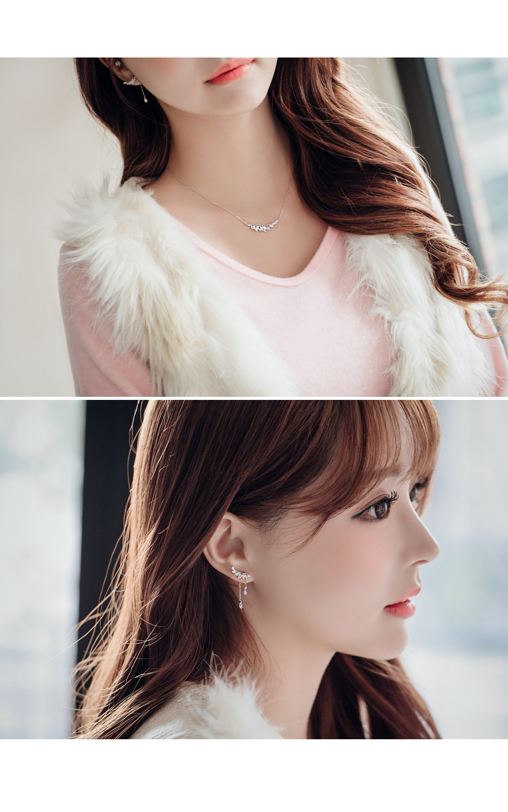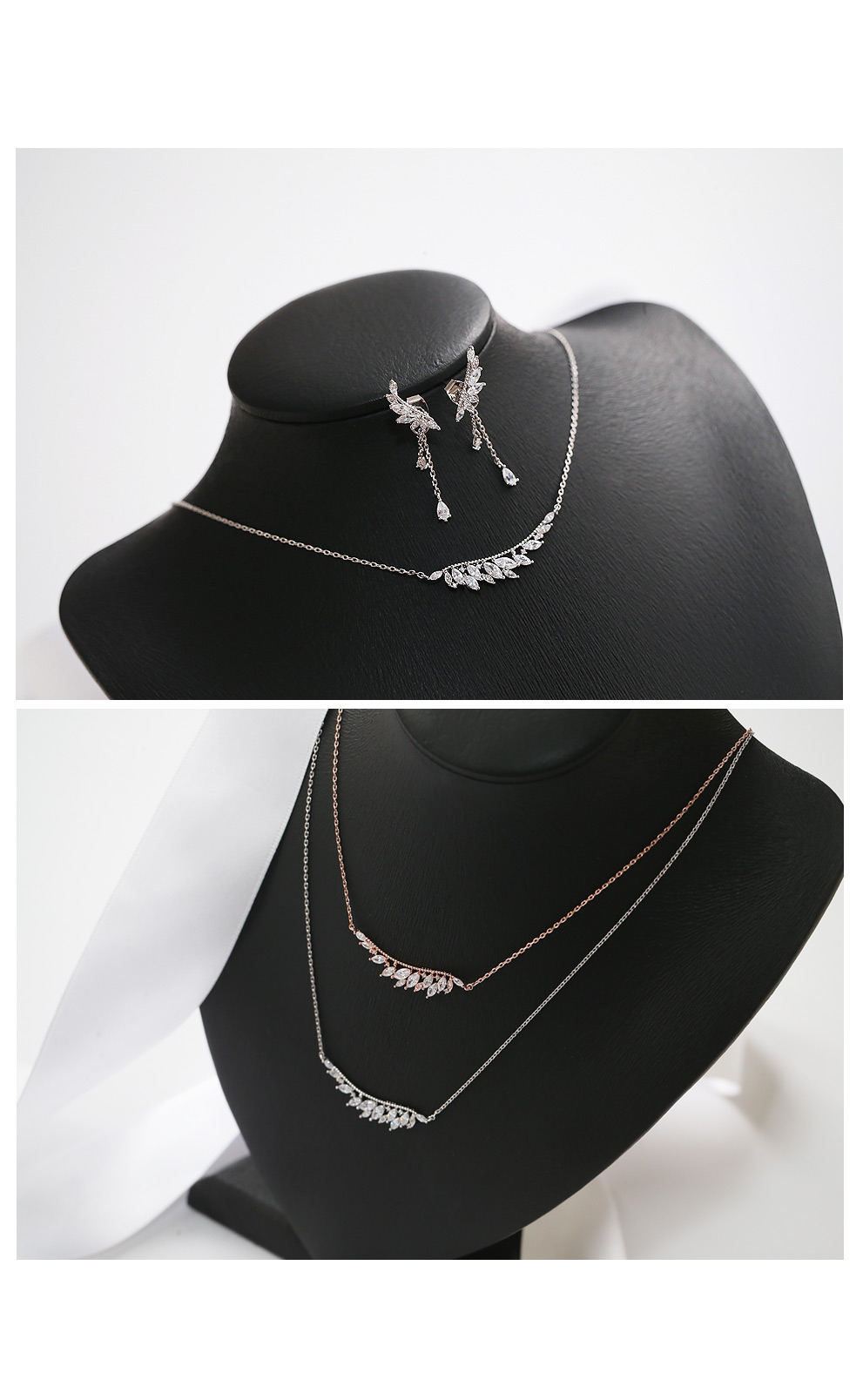 작은 잎사귀들을 모티브로 디자인된 퓨어하고 청초한 매력의 프란치아 윙 세트 (목걸이/ 귀걸이) 입니다.