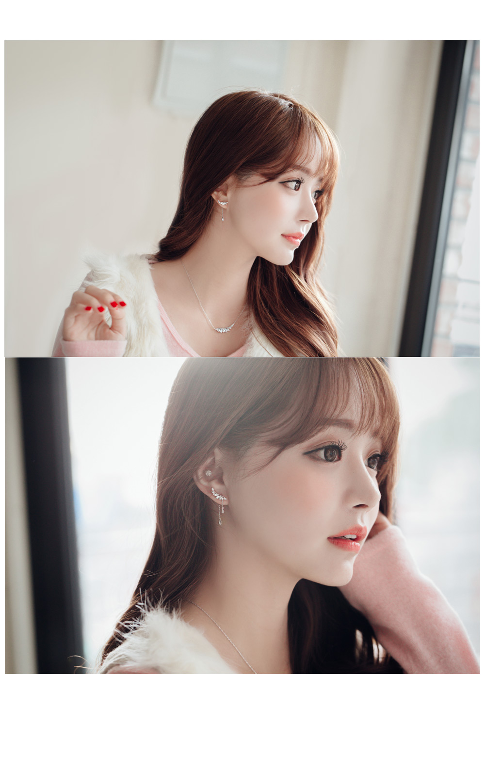 귀걸이는 앞에서 꽂고 뒤에서 꽂는 유니크한 투웨이 디자인의 제품이며
