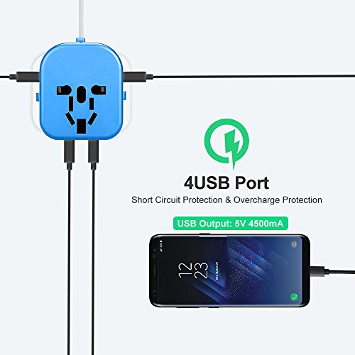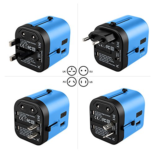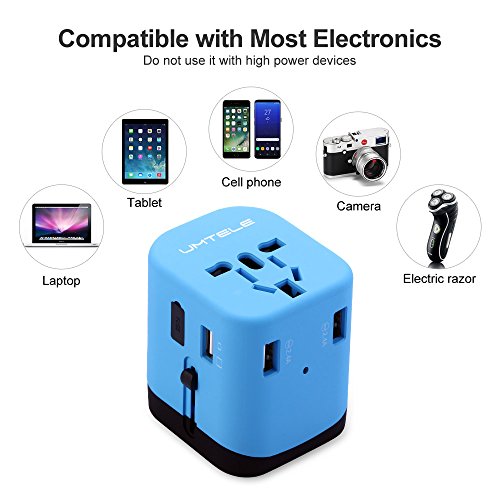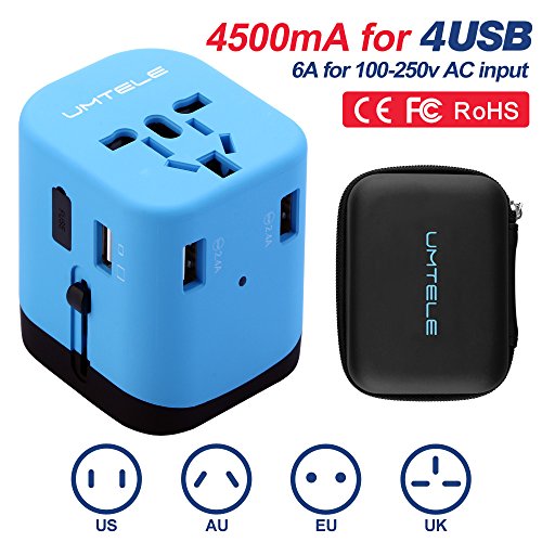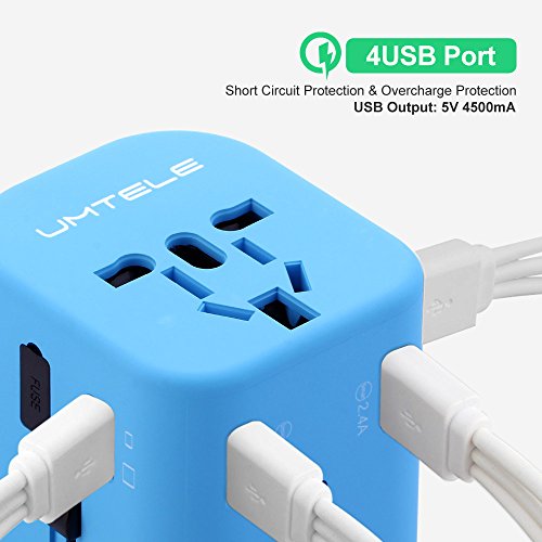 Travel Adapter, UMTELE Universal Charge All-in-One Wall Outlet Plug International AC Adapter with 4 USB Ports, Compatible With UK, US, EU, Asia and AU Standard, Blue