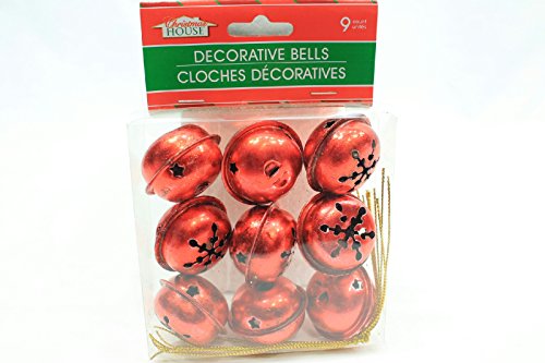 (Pack of 2) 9 Large Christmas House Aged Finish Snowflake Cutout Jingle Bells (Red)