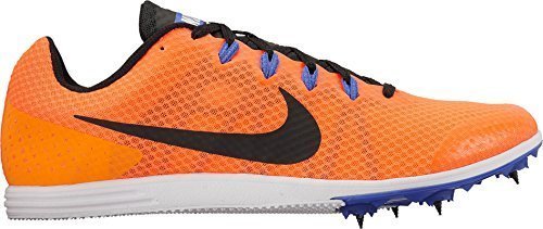 Put the competition in the rearview with the Zoom Rival D 9. A spacer mesh upper with no-sew overlays and Flywire technology delivers superior support, fit, airflow and durability for improved performance. The Nike® Zoom Rival D 9 track and field shoe has a compression molded Phylon midsole that provides a reactive ride from heel to toe, while a Pebax® Spike plat with 6-spike layout ensures maximum traction on a variety of surfaces. Features: - Ideal for long distance events