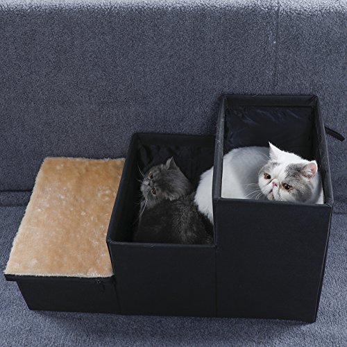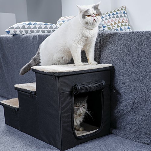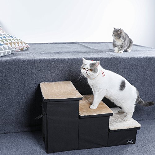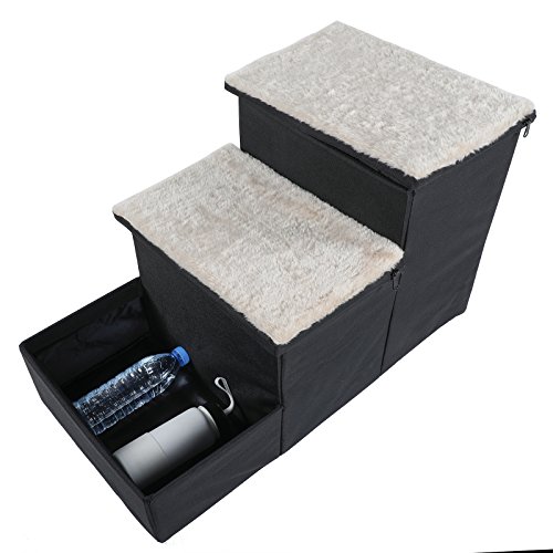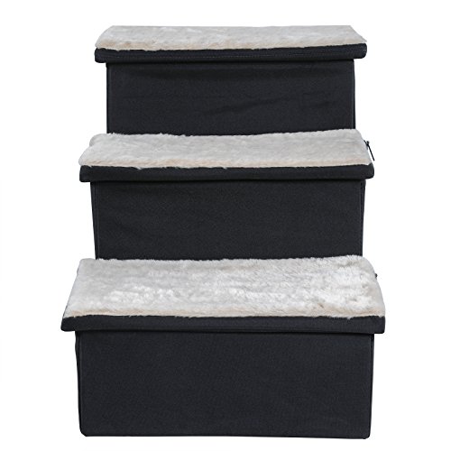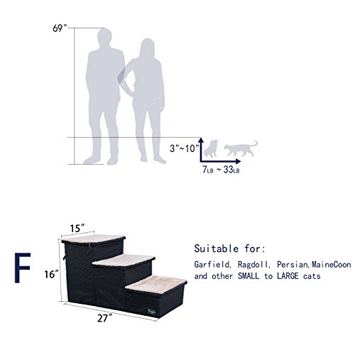 Basic Information: Fabric: Oxford Cloth and Mesh Color: Black Dimension: 27" Lx 15"W x 16"H Note: There are slabs inside to support the step and it is very sturdy. Designs and Functions: 1. Wide step make it safe for your pet, not for tall bed. 2. Good for dogs with short legs and long body, also small and older pets. 3. Ideal pet steps for senior, arthritic or recovering dog or cat. The pet step cushion will reduce the risk of injury in the case of weak legs or bones. 4. 3 steps stairs is very strong, lightweight, and padded for safety. Lightweight design is easy to lift and very portable. 5. Portable, easy to store and transport. Easy assembly, no tools required. Warranty: 1. Petsfit adhere to Amazon Return Policy. 2. Within 30 days, any quality problems, we will take full responsibility. 3. Any damages happened during shipping period, we will burden the cost. Attention: Please check the product dimensions and measure your pet before buying. 0