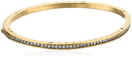 -. Feature : Finish any outfit with some major shine with this gold-tone hinged bangle bracelet. The wide, polished bracelet is set with a row of pavé crystals for dramatic sparkle. / Measurements: 2.25" / Finish: Polished