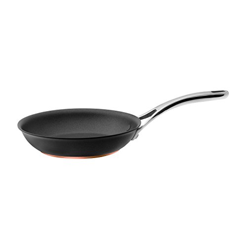 Anolon Nouvelle Copper is made from hard anodized aluminum which is twice as hard as stainless steel and offers exceptional heat distribution. A double full cap base features a layer of aluminum that is encapsulated with copper followed by more aluminum and finished with an impact-bonded magnetized stainless steel cap. This unique combination of materials offers outstanding heat distribution and cooking performance and is suitable for all cook tops, including induction. Restaurant-tested Dupont Autograph 2 nonstick on the interior delivers enduring performance and superior durability. Generously appointed cast stainless steel handles are attached to the pan bodies using innovative flush-rivet technology which makes clean up quick and easy. Oven safe to 500-degrees F.Feature