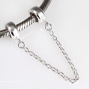 .925 Sterling Silver Stopper Safety Chain Bead Charm For European Charm Bracelets