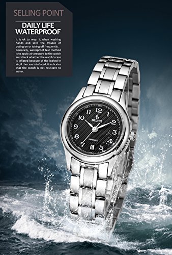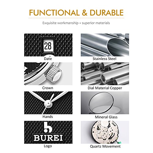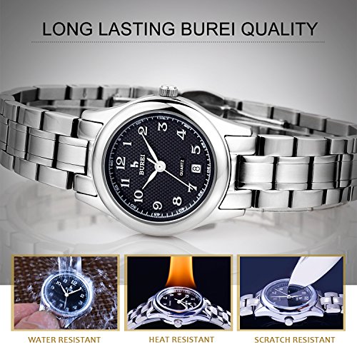 -. Title : BUREI Women Dress Watches with Black Dial Date Calendar Metal Bracelet