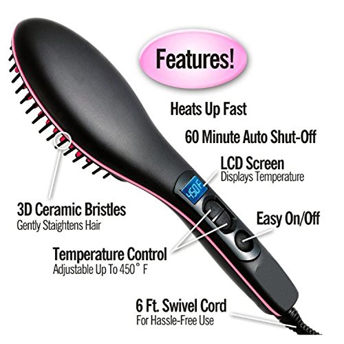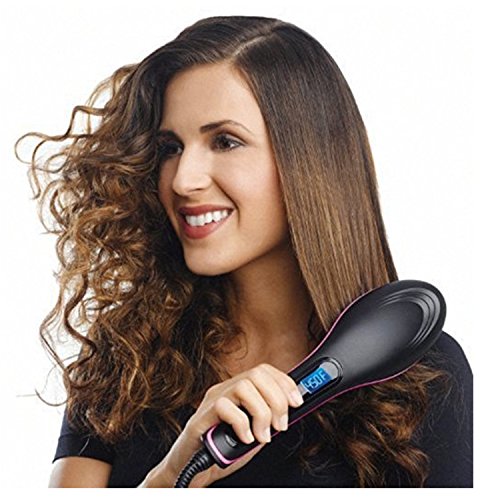 Feature : The Portable Electric Hair Straightening Brush gives you expert quality results in no time! / INSTANT HEAT ON CONTACT: This electric hair straightening brush takes less than 60 seconds to get as hot as 365-degrees Fahrenheit thanks to expert-grade PTC ceramic heating components. The same components also help it maintain a constant, designated temperature. The result: professional effects without burning or scalding. / SMALL, BUT POWERFUL: Hair styler is slim, Special design with 23 ceramic heating pieces allows it to quickly make contact and heat large portions of hair at one time. Heats evenly and thoroughly to produce the most professional-looking results. / SIMPLE TO OPERATE: Hair straightening brush allows you to straighten hair at home on your own. High end liquid crystal display lets you control and monitor temperatures easily, and the rotating wire means you can hold the device at any angle for the best straightening results