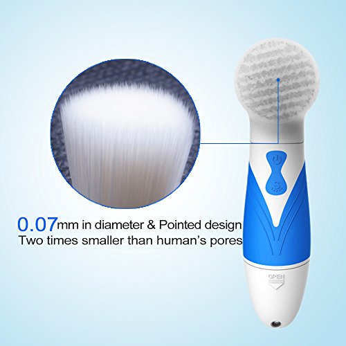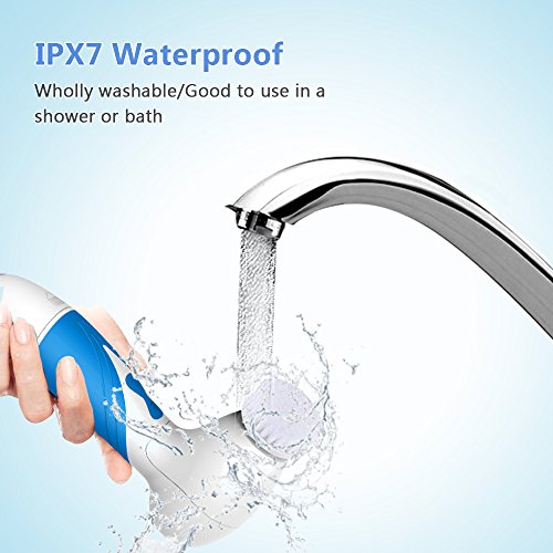 IPX7 Waterproof Facial Brush: Handheld cordless awesome water resistant to allow using in shower and rubberized silicone(ABS+TPR) hand grip to avoid slipping.