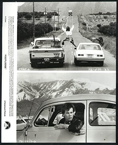 MOVIE PHOTO: FOOTLOOSE-8X10 B&W PHOTO-KEVIN BACON/LORI SINGER/CARS FN