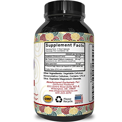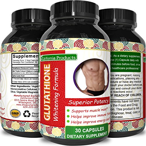 Natural Skin Whitening Glutathione 500 mg - With Milk Thistle - To Help Protect The Immune System + Aid In Muscle Developement - Can Aid In Kidney...