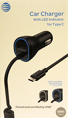 -. Title : AT&T 4900G 4.8 Amp USB Type C Rapid Car Charger with Smart LED Charge Indicator - Retail Packaging - Black