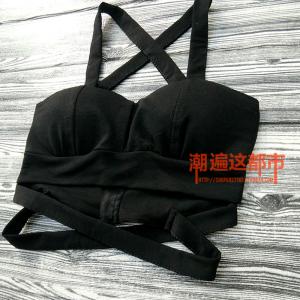 ブラトップ スポーティー トップス クロス 胸下クロス ブラック プチプラ セクシー 短丈トップス ショート丈