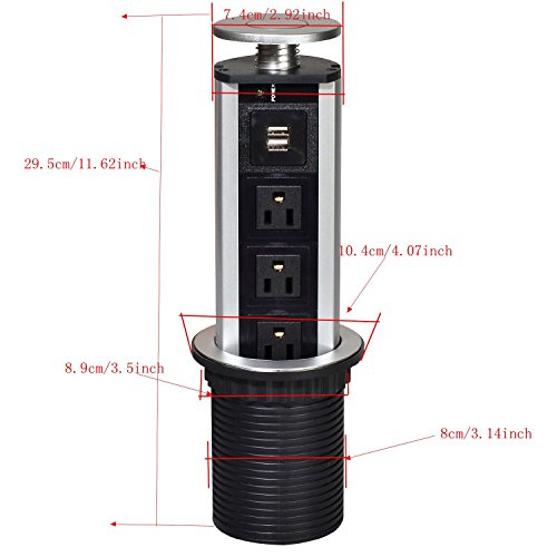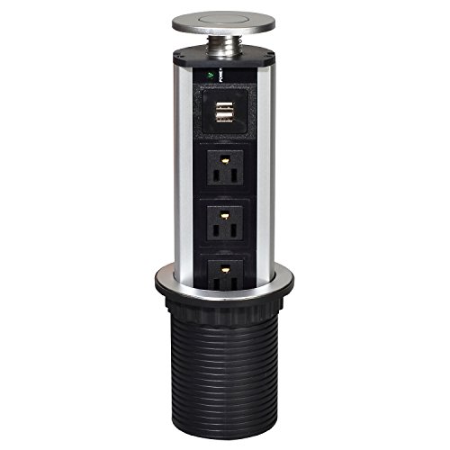 Elegant system to put plug sockets ,out of sight when not in use. No more plug sockets on the walls just a flat clean tiled surface. It provides a tidy, neat and efficient workspace.