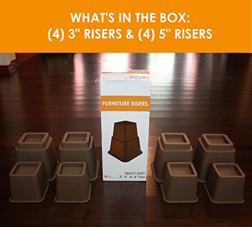 MODULAR DESIGN - Don't know how much lift you need? This set provides 3", 5" or 8" clearance for four furniture legs. One set can lift four furniture legs 3", and another four furniture legs 5", or combine them both to lift one item a total of 8"!