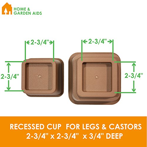 RECESSED CUPS - Recessed furniture cups capture furniture feet securely and measure 2-3/4 in. x 2-3/4 in. x 3/4 in. deep. As with most risers, DO NOT use with chairs, recliners or furniture without legs.