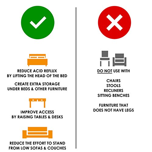 MANY APPLICATIONS - Raise chests of drawers, tables, sofas, couches and other furniture to the working or sitting height best suited for you. Create additional storage under your bed, or lift the head of the bed to alleviate acid reflux and snoring.