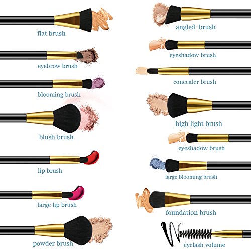 15 pieces: cover all kinds of cosmetics products, suitable for applying, blending and shading product, including powder brush, foundation brush, eyeliner brush and lip brush