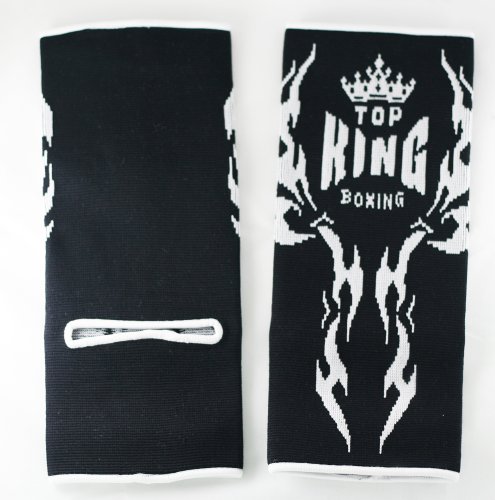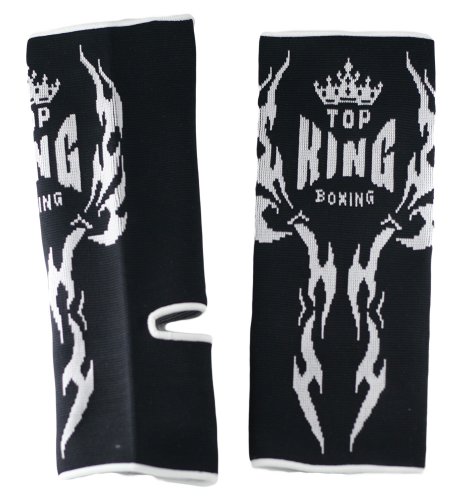 TOP KING Professional Elasting Ankle Wraps support Guard for Training and Competition TKANG-02 Size L (Black/White knit)