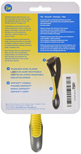 Studio : JW Pet Company Publisher : JW Pet Company Binding : Misc. Product Description Deshedding tool with improved ergonomic feel and aesthetic value. Tool removes loose fur and debris to reduce overall shedding and promote a healthy skin and coat. JW has stainless steel blades and cushioned non-slip handle. 0