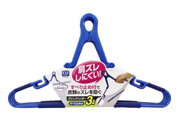 衣類のズレを防ぐ機能性ハンガー。肩部を握るとキャッチ部が倒れるので、丸首シャツもラクに干せます。キャッチ部が倒れたときに、本体とキャッチ部の間に手や指をはさみにくいジョイント構造です。 |