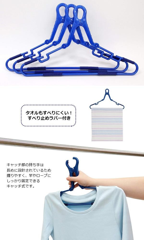 | 衣類のズレを防ぐ機能性ハンガー。肩部を握るとキャッチ部が倒れるので、丸首シャツもラクに干せます。キャッチ部が倒れたときに、本体とキャッチ部の間に手や指をはさみにくいジョイント構造です。 |