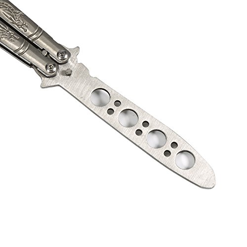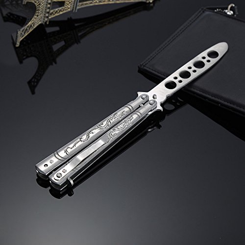 AWESOME DESIGN: High details double dragons carved brings a cool looks. the feel - like - a- pro butterfly practice knife